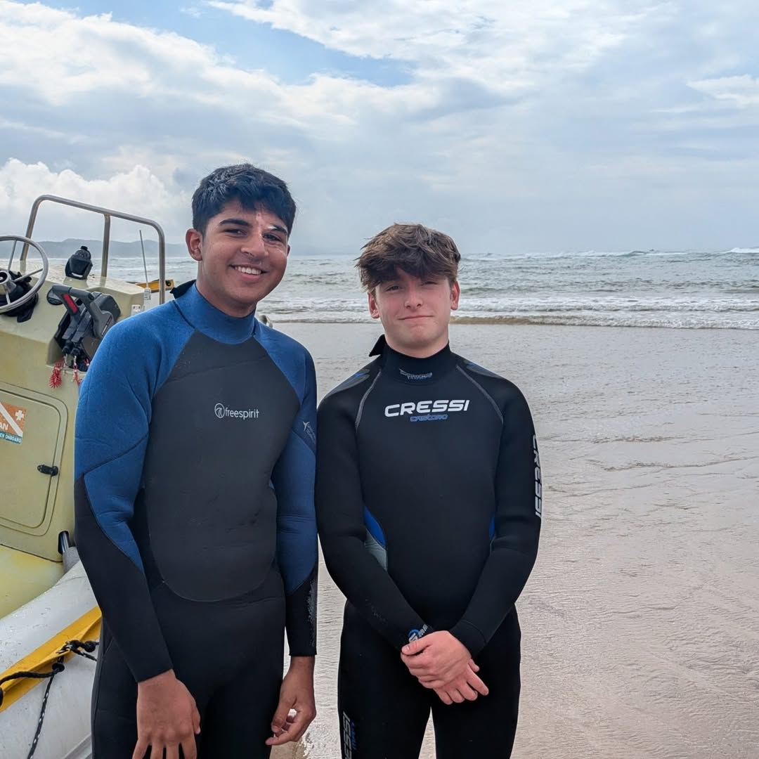 The rest of us went underwater for our final scuba dive. After three intense days of training, we were finally ready. It was surreal — floating through the clear blue water, surrounded by shoals of colourful fish. Some of us even saw manta rays gliding through the depths. A couple of boys from our group found a shark tooth on the seabed, which they proudly showed off like treasure. Once we surfaced, the beachside cafe was open, and we grabbed drinks and snacks, still buzzing from the dive.