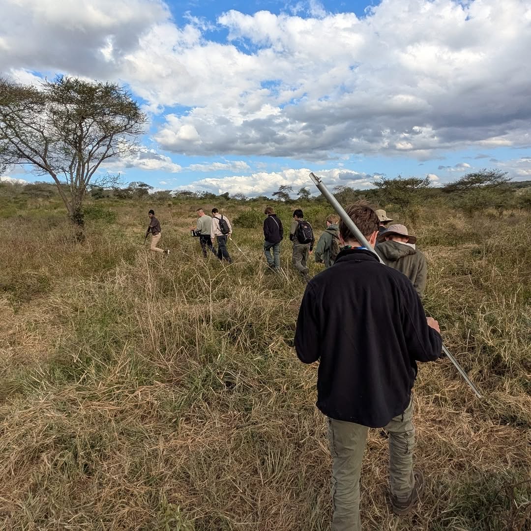 After lunch we went on a vegetation survey to help assess species of trees, grass, and other plant life. There were a lot of wild mint trees. Whilst on the survey, our field guide pointed out a white rhinoceros that was watching from about 150m away, a breathtaking experience. On the way back we had a sighting of the beautiful Purple-Crested Turaco which is an amazing bird with a unique call. We got back just in time for our second lecture of the day on bird colouration. After dinner, we watched a documentary on Africa by David Attenborough whilst eating popcorn.