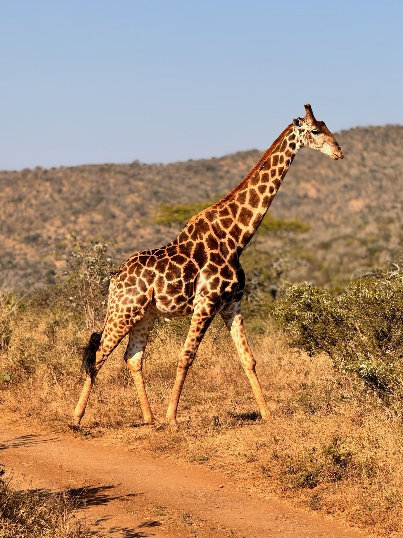 I started the day freezing cold at 6am to do a bit of bird watching and then went on an early-morning game transect. Sadly, we only saw four nyala on the drive and it was also freezing with biting wind, but we still took in the beautiful scenery and views of the savanna. After lunch, we were taught about the different tracks and dung of the famous animals like rhinos, elephants, antelope and hyena by an experienced guide, then went out of camp and saw elephant dung and a leopard print.