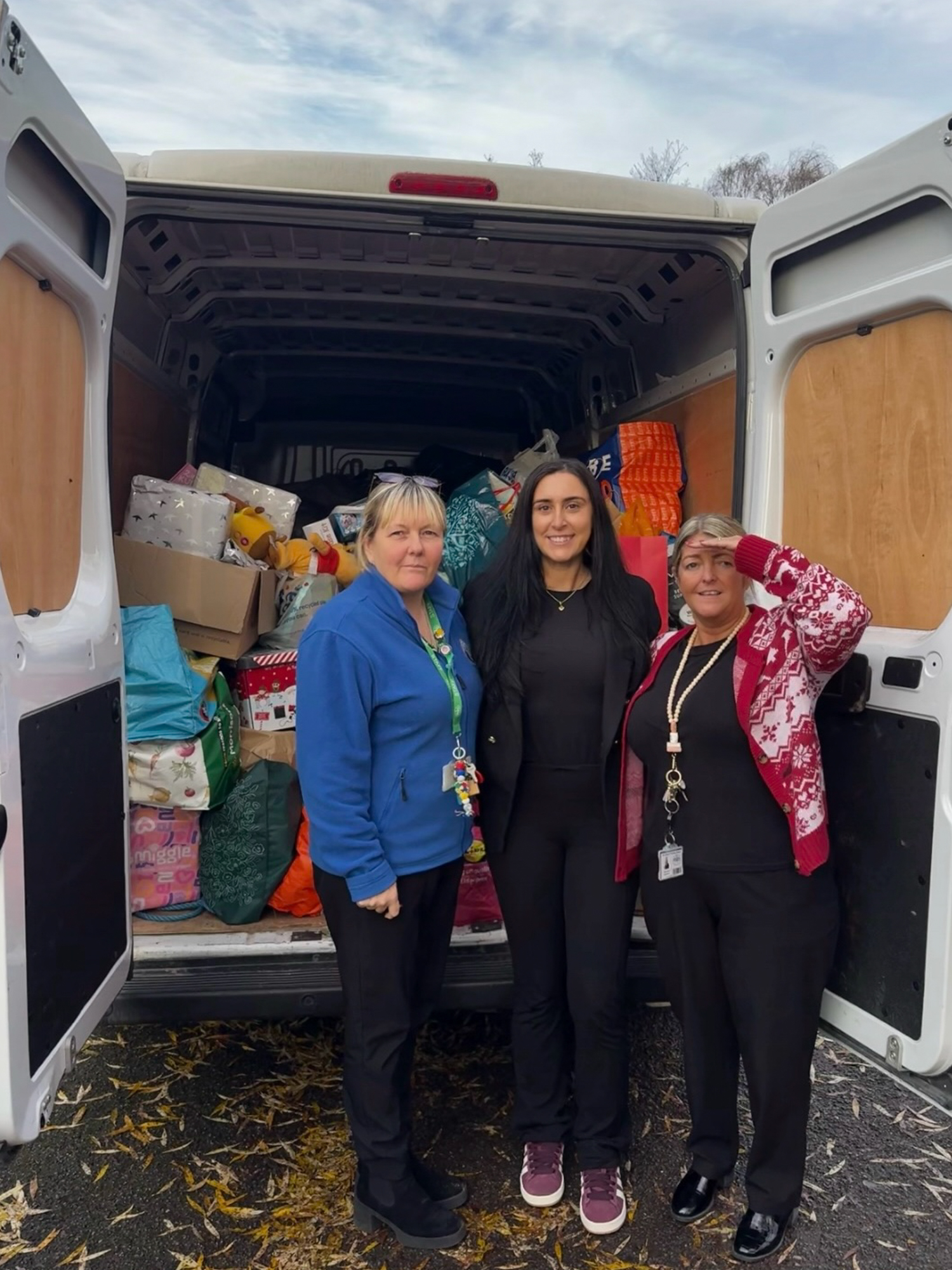 "I then go and deliver to the schools in Bolton and Manchester. I took our Year 1 School Council representatives this year to deliver to a school in Bolton. It is a great feeling knowing we have helped over 100 families this year. Thank you everyone for your continued support!"